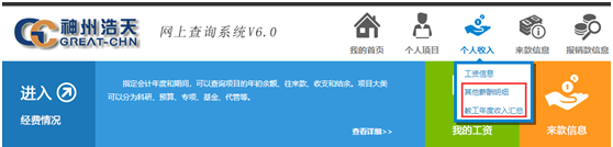 2、登录“网上查询”系统,点击“个人收入”—“教工年度收入汇总”,即可查询包含个人其他明细、个人工资在内的所有收入,明细依旧按照发放日期进行展示和汇总。